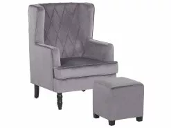 Uudista olohuoneesi ilmettä tällä elegantilla samettiverhoillulla nojatuolilla. Tuoli on helppo yhdistää monenlaiseen sisustustyyliin. Jalkarahin ansiosta tämä nojatuoli on täydellinen paikka rentoutua. Tuolissa on paksut pehmusteet ja puiset jalat tekevät siitä kestävän.