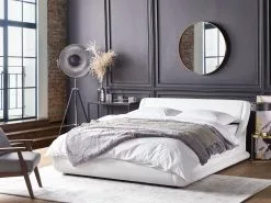 Beliani Sänky Keinonahka Säilytystila Valkoinen METZ Useita Kokoja