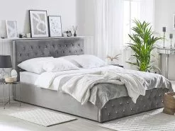 Beliani Sänky Sametti Säilytystila Harmaa BATILLY Useita Kokoja