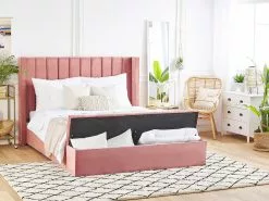 Beliani Sänky Sametti Säilytystila Vaaleanpunainen NOYERS Useita Kokoja